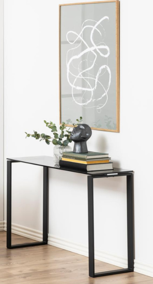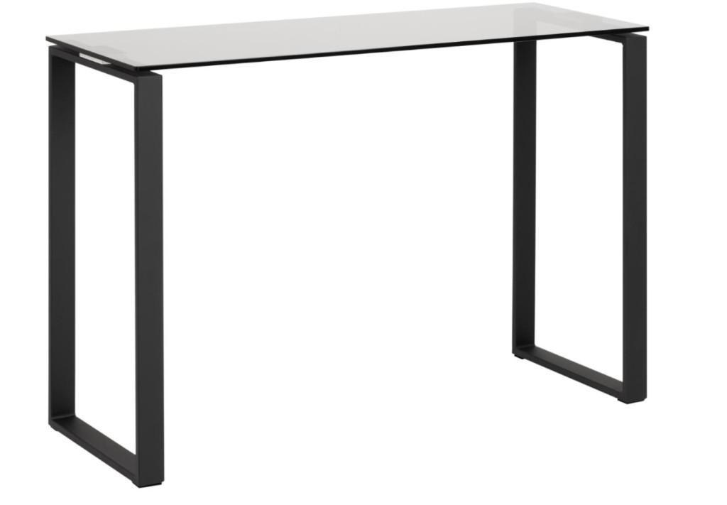 CATHARINA konzolasztal. Stílusos füstüveg lap, fekete fém kerettel..