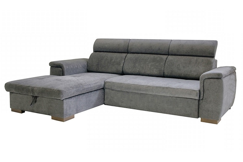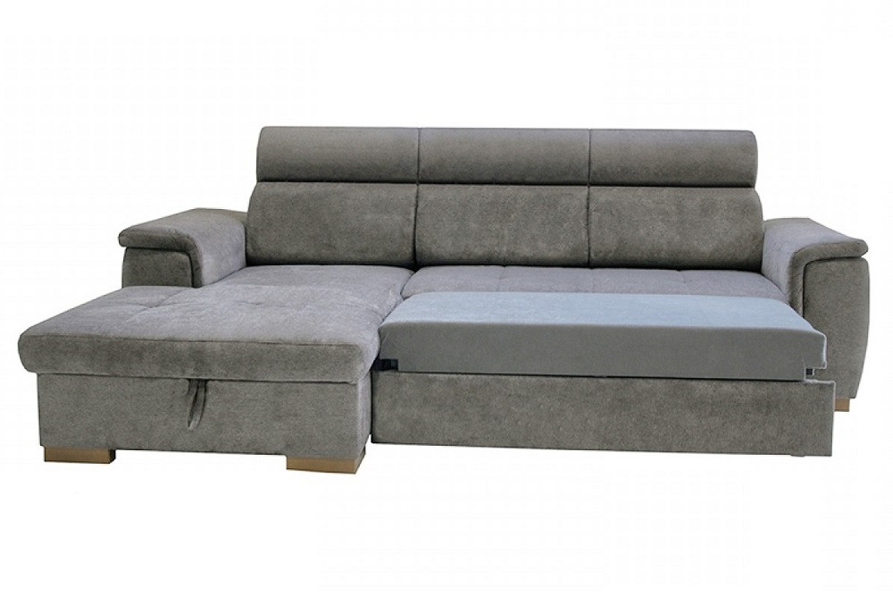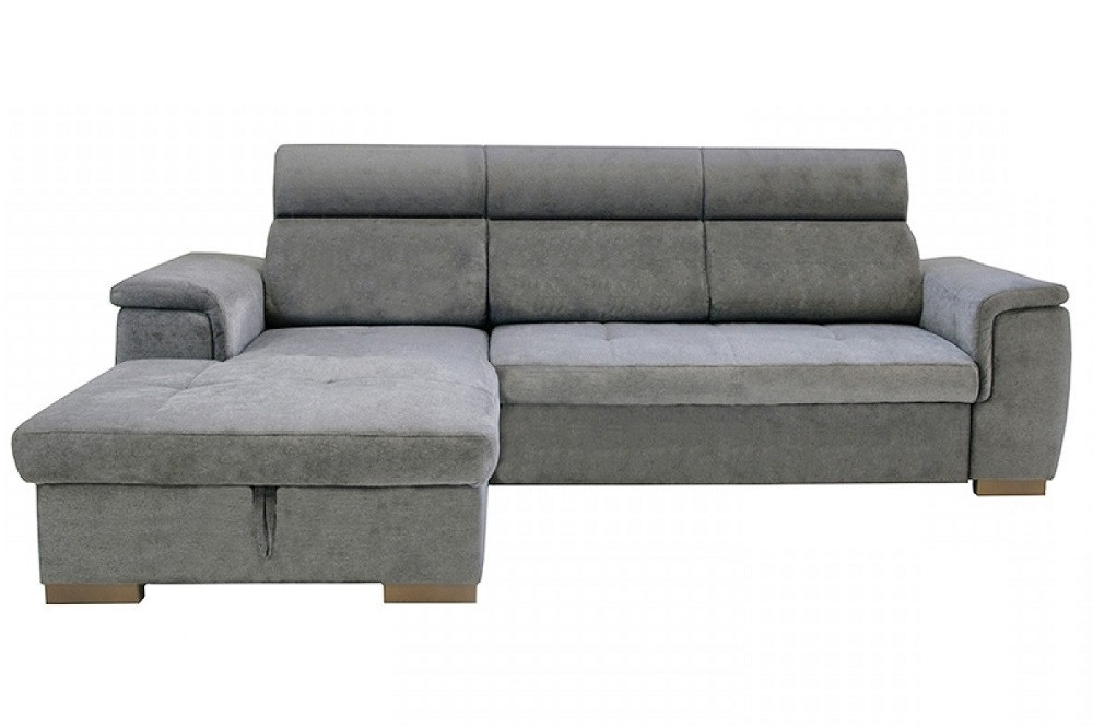 DELANO L-alakú sarok ülőgarnitúra világos szürke színben, 275x85/103x198 cm-es méretben, ágyneműtartóval és vendégágy funkcióval. Az ülőfelület hullámrugó alátámasztással, 42 cm-es ülés magassággal és 62 cm-es beülési mélységgel rendelkezik. Extra kényelmet a fokozatosan állítható fejtámlák biztosítják.