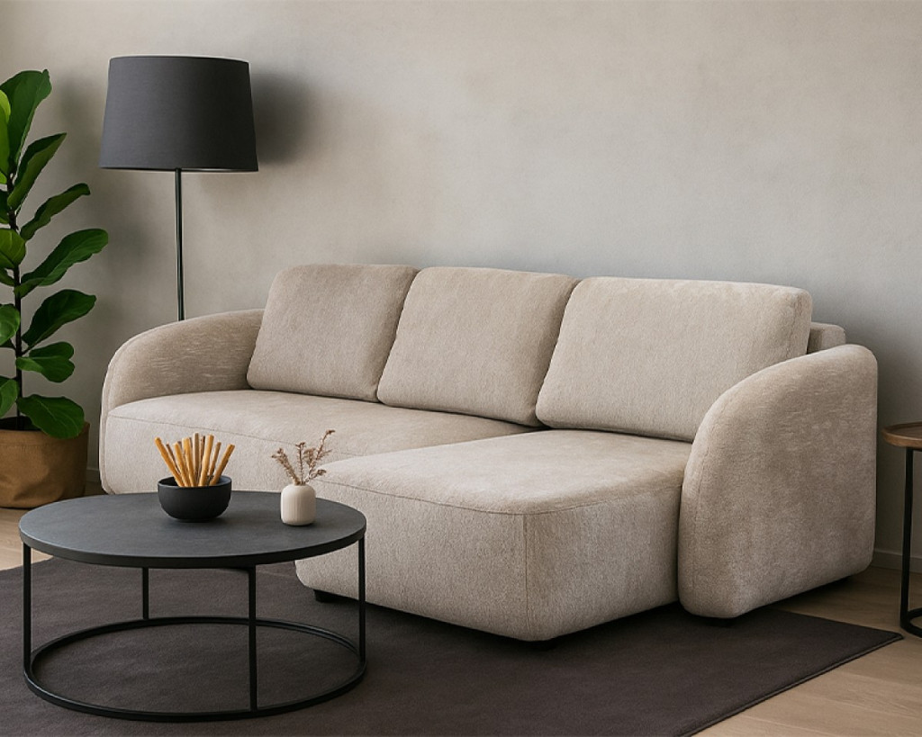 JERRY sarokgarnitúra – Kényelem és stílus egybenFedezd fel a Jerry sarokgarnitúrát, amely a modern dizájnt és a praktikus funkcionalitást ötvözi. Letisztult vonalvezetésével és kellemes, puha tapintású szövetborításával a nappali ékköve lesz. A lekerekített formák és a neutrális színvilág barátságos, otthonos hangulatot teremtenek.