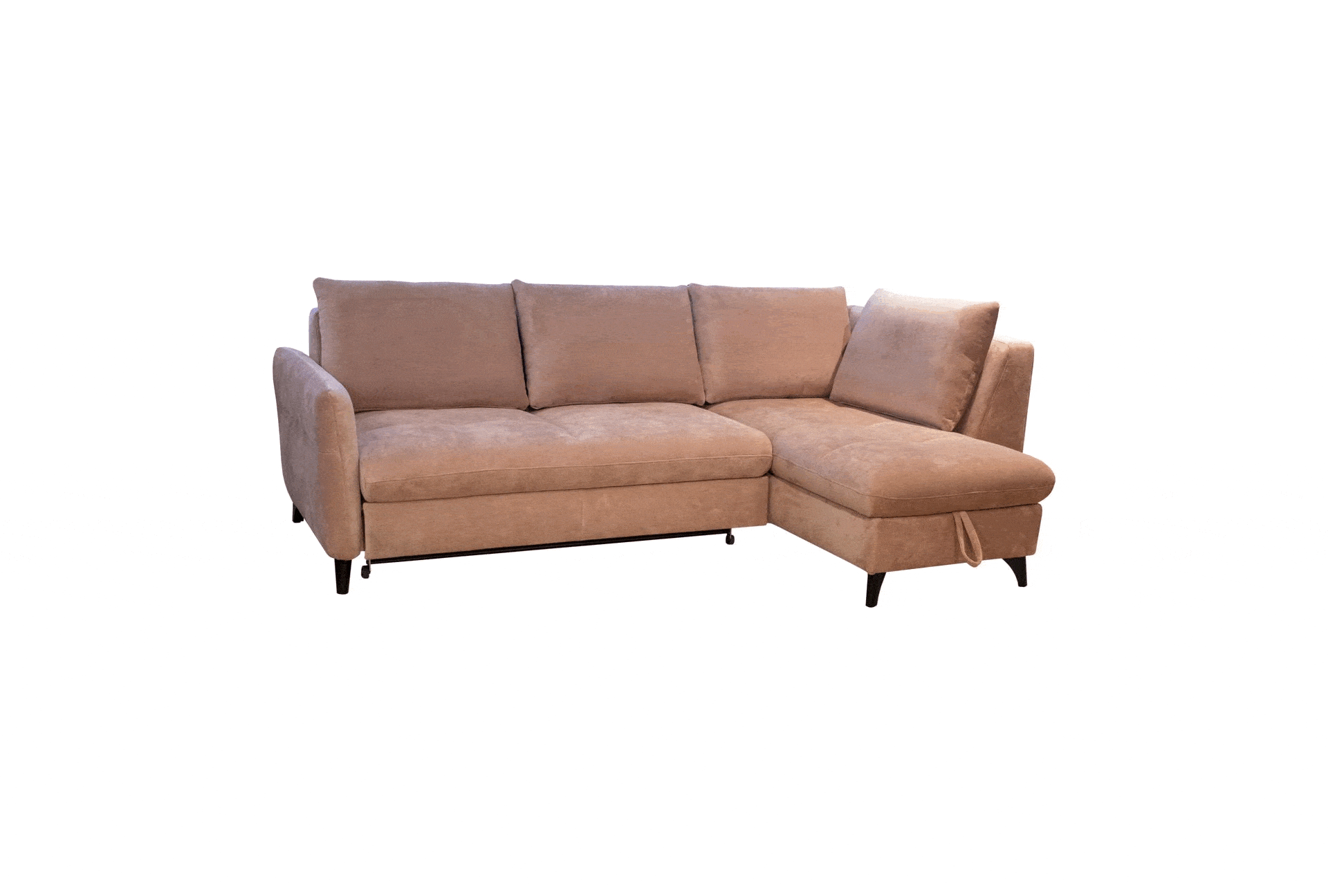 KIWI L-alakú ágyneműtartós ágykanapé, 239x92x162 cm-es méretben, mindennapos alvásra alkalmas kihúzható ágy funkcióval.