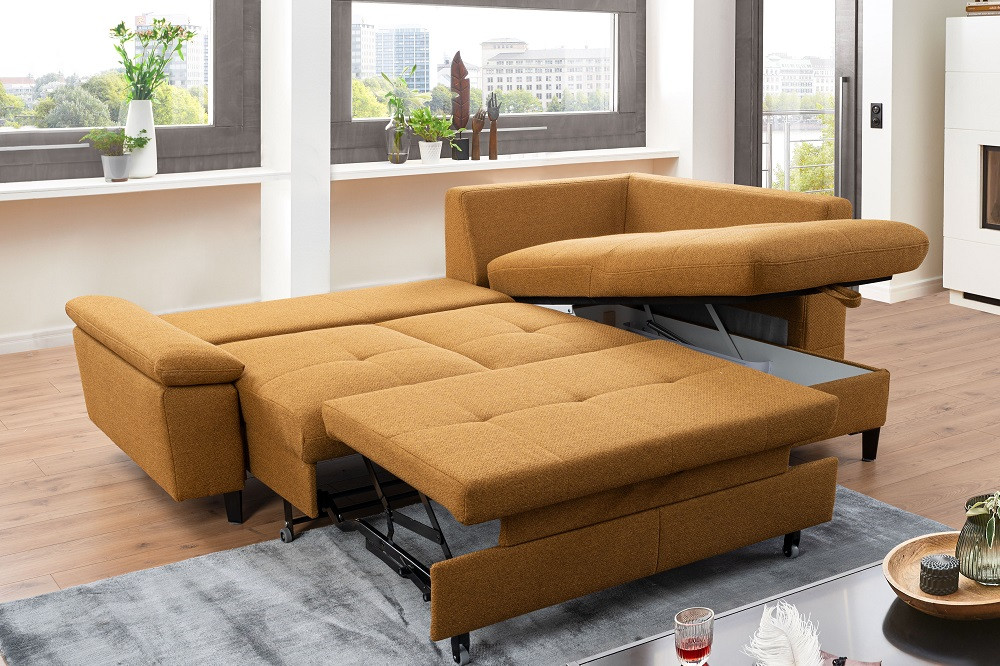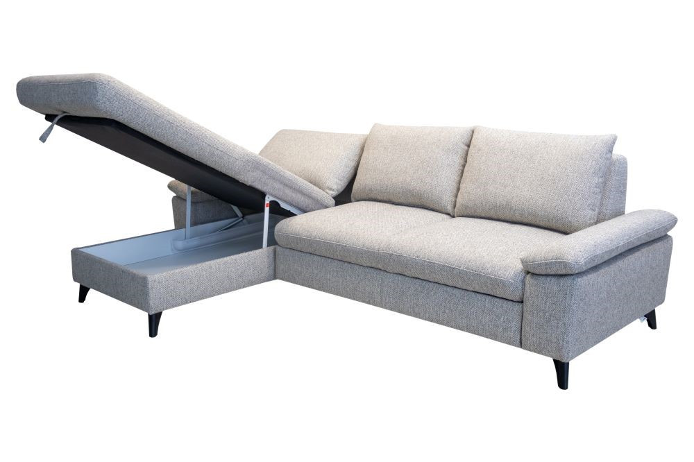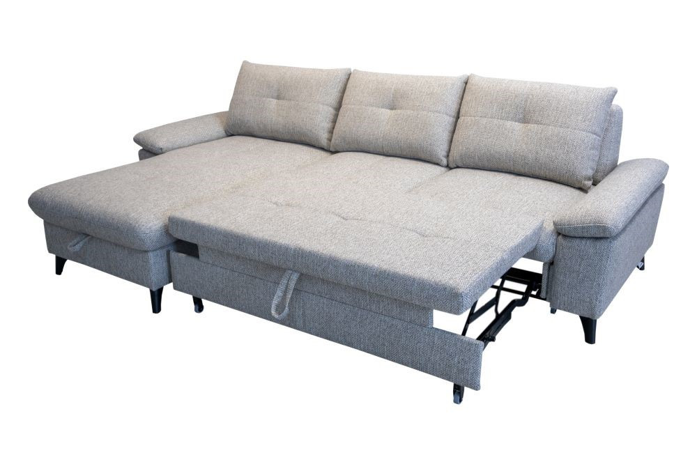 MERCURY (Mondial) L-alakú sarok ülőgarnitúra taupe színben, 248x92x173 cm-es méretben, ágyneműtartóval és mindennapos alvásra alkalmas kihúzható ágy funkcióval.