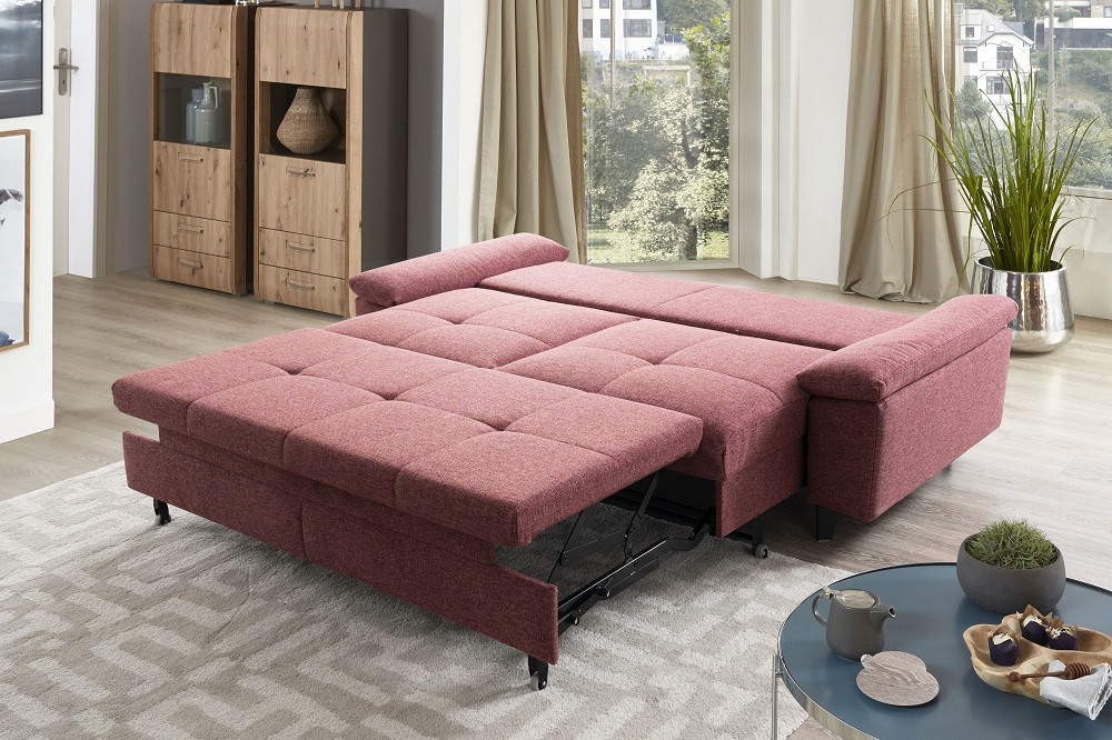 A modern kivitelezés mellett fontos a hosszú élettartam, amit a kemény fa váz biztosít kanapédnak. Az extra kényelmet tovább fokozza a 3db nagy steppelt háttámla párna és a TV nézéskor kihúzható ágyrész. Speciális üléskomfort, hullámrugón bonellrugó és hideghab gondoskodik a pihentető alvásról a derékrész alatt.
