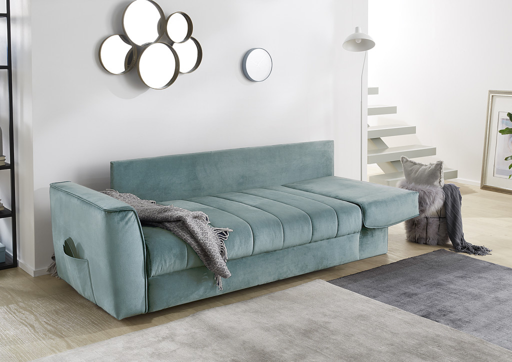 RICK kanapé helytakarékos, funkcionális vendégágy funkcióval! Oldalról kihúzható ággyá alakítható. Az integrált ágyneműtartó bőséges tárolóhelyet kínál a kis terekben is. A rugós maggal kárpitozott ágy tökéletes ülési és fekvési kényelmet biztosít.