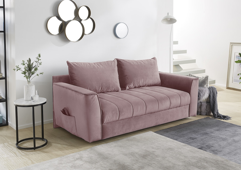 RICK kanapé helytakarékos, funkcionális vendégágy funkcióval! Oldalról kihúzható ággyá alakítható. Az integrált ágyneműtartó bőséges tárolóhelyet kínál a kis terekben is. A rugós maggal kárpitozott ágy tökéletes ülési és fekvési kényelmet biztosít. 2 hátpárna tartozik hozzá. A háttámla nincs valódi szövettel bevonva.