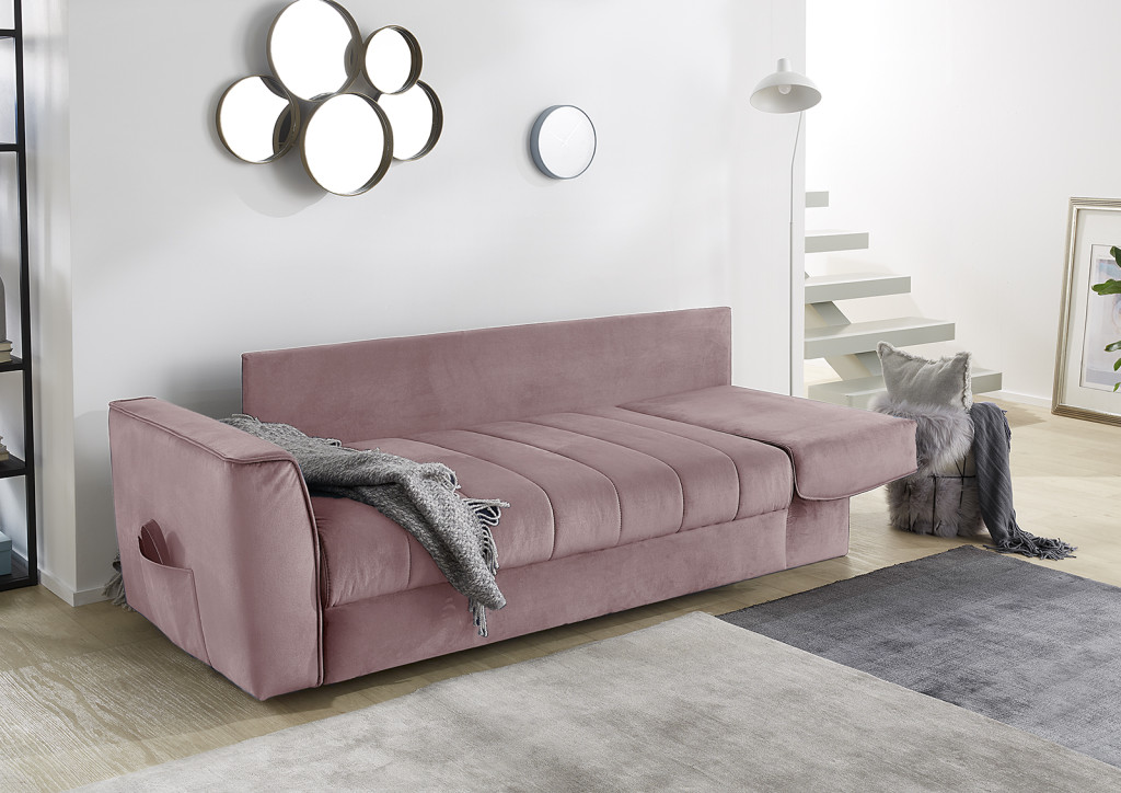 RICK kanapé helytakarékos, funkcionális vendégágy funkcióval! Oldalról kihúzható ággyá alakítható. Az integrált ágyneműtartó bőséges tárolóhelyet kínál a kis terekben is. A rugós maggal kárpitozott ágy tökéletes ülési és fekvési kényelmet biztosít.