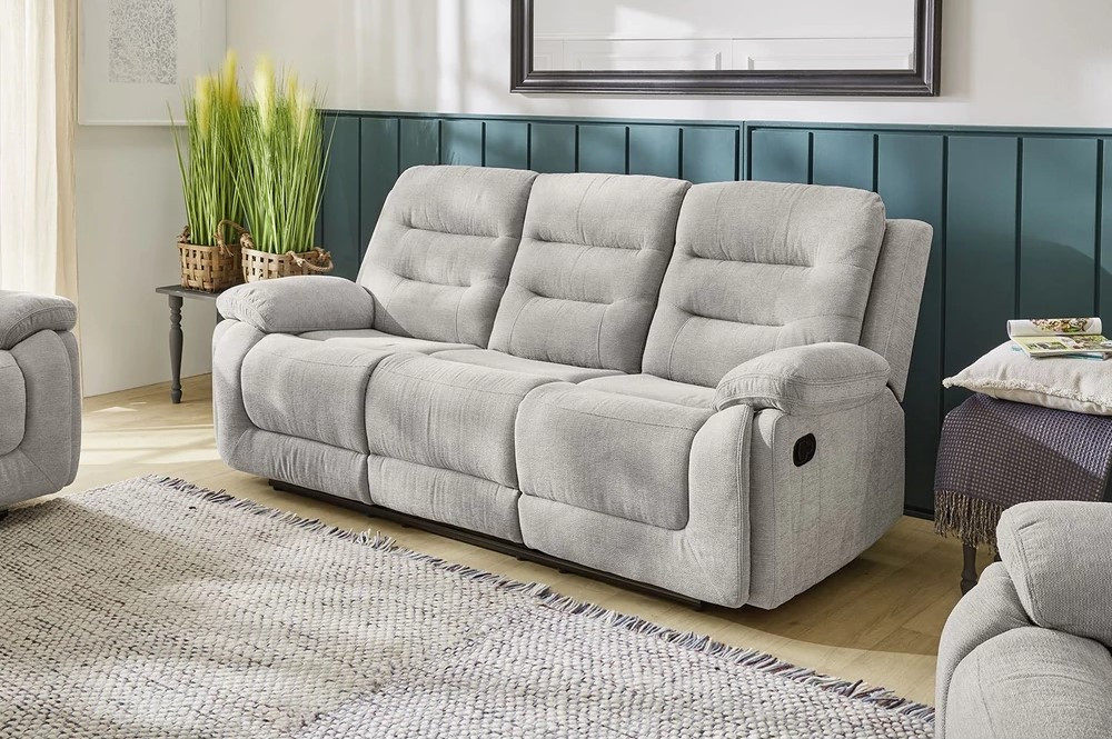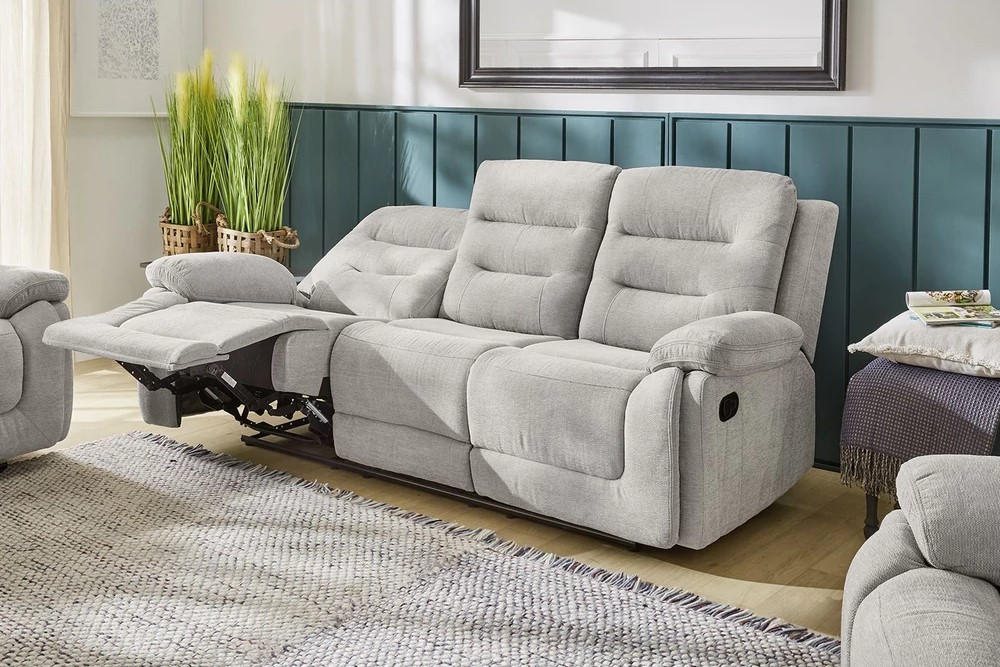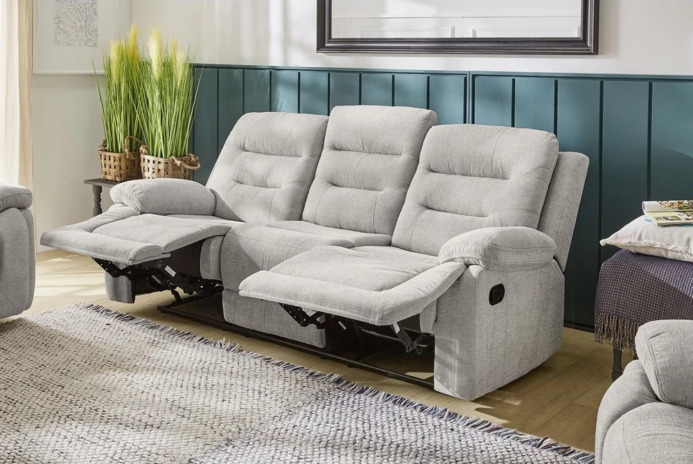 SILK 3 üléses relax kanapé a klasszikus értékek és a kényelem kedvelőinek, 220x103x98cm-es méretben, szürke színben. A manuálisan működtethető relax Tv-néző funkciót a karfa melletti üléseknél használhatod!