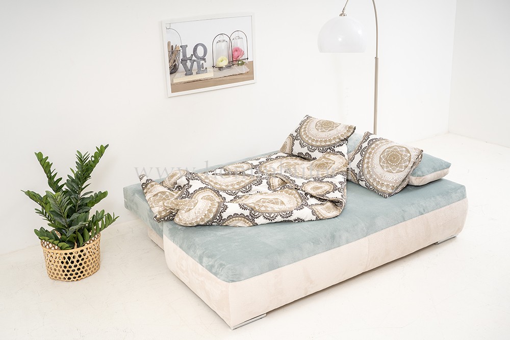 Megtekinthető bemutatótermünkben. Az ár tartalmaz 2 db 90x55cm-es hátpárnát, 2db 60x40cm-es karpárnát és a kiemelő vasalatot.