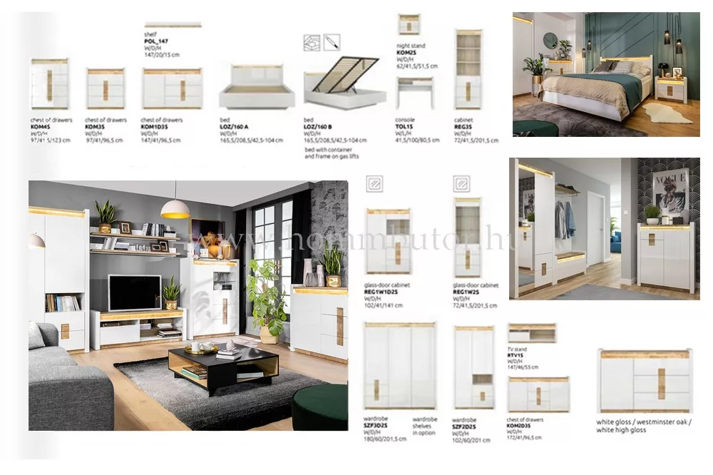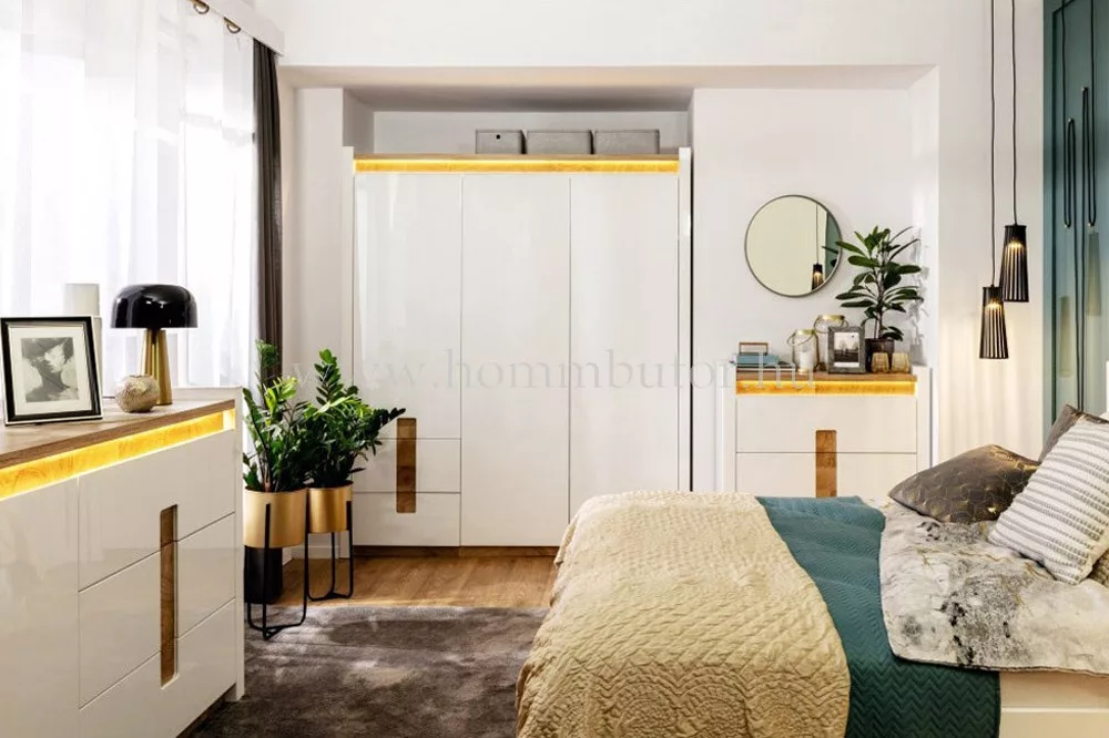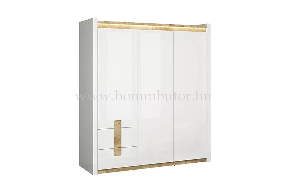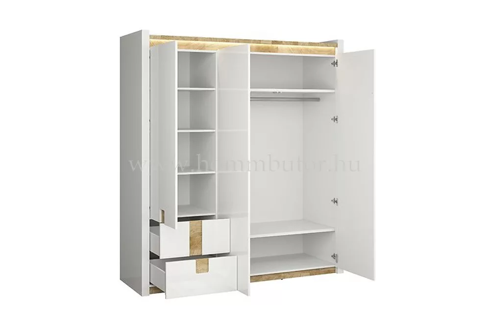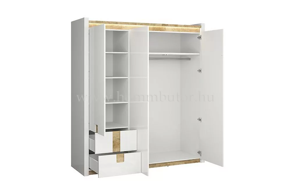 A termék lapra szerelt, összeszerelést igényel.A gardróbszekrény a világítást és a keskeny tartalmazza. Opcióként rendelhető az akasztós részbe kiegészítő polclap (válassz a legördülő listából).