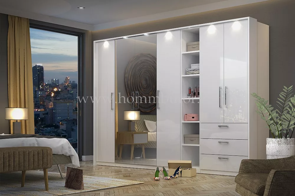 A feltüntetett ár fehér-fényes fehér színű szekrényre vonatkozik.A lehetőségekért kattints a legördülő listára! Állítsd össze gardróbszekrényedes APPIUS bútorcsalád elemeiből!Kiegészíthető LED-világítással, és passepartout-val..