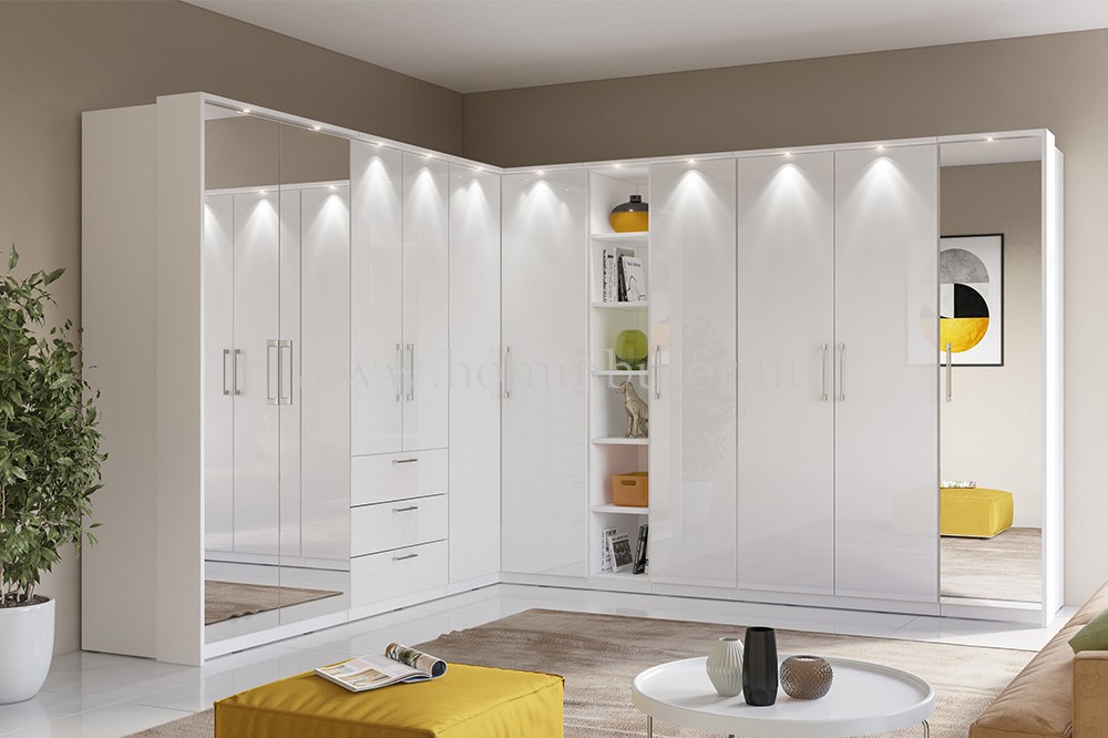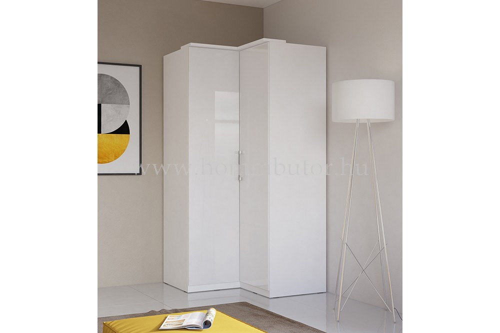 A feltüntetett ár fehér-fényes fehér színű szekrényre vonatkozik.A lehetőségekért kattints a legördülő listára! A sarokszekrény oldalának mélysége 63 cm Állítsd össze gardróbszekrényedes APPIUS bútorcsalád elemeiből!Kiegészíthető LED-világítással, és passepartout-val..