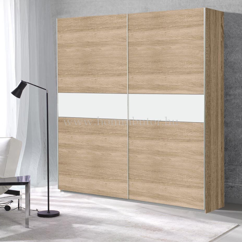 Runner Plus 2 tolóajtós gardróbszekrény 220x210x61cm-es méretben sonoma tölgy- fehér színben. Akasztós részeibe ingek, blúzok, kabátok, kosztüm nadrágok és minden gyűrődős ruhadarab elfér. Ajánljuk a modern dizájn kedvelőinek. Kiegészítőként ajánljuk az ajtóbehúzó vasalatot, mellyel biztosítható a tolóajtó lágyabb záródása.