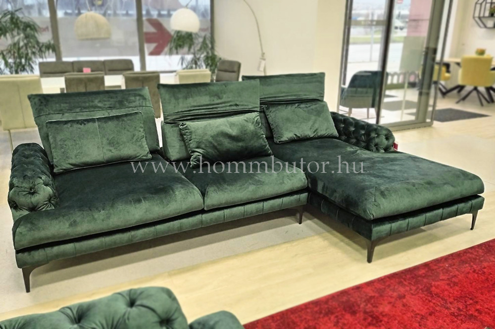 Tágas nappaliba, nagy méretekkel rendelkező ülőgarnitúra, a modern dizájnt kedvelőknek. A mély ülőfelület magas felhasználók vagy a felkucorodni vágyók számára nyújt megfelelő kényelmet. Jellegzetessége a fokozatosan állítható fejtámla és a kézzel állítható háttámla. Egyedisége a melytűzött Chesterfield hangulatú karfa. Válaszd ezt a modellt ha egy különleges, elegáns bútora vágysz. Az ülőfelület kényelmét a nagy rugalmasságú kárpitheveder, plusz memóriahabpárna biztosítja.